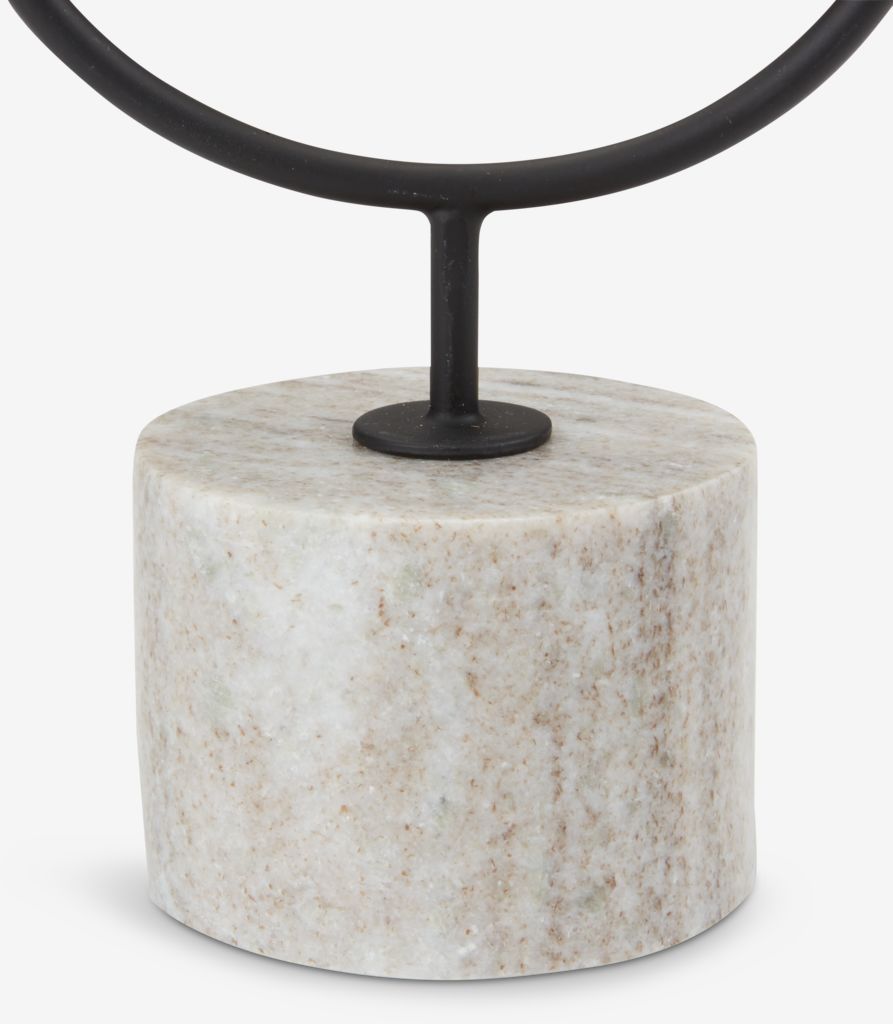 El Portavelaspresenta unDiseño moderno en forma de Uelaborado en elegante acero negro, montado sobre unbase de mármol macizoEl llamativo contraste entre el metal refinado y la piedra natural crea un elemento decorativo visualmente cautivador.